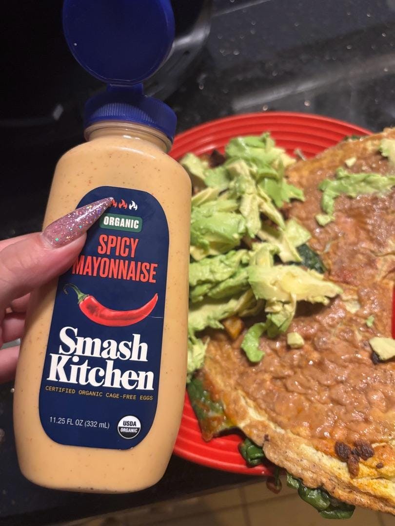 This mayonnaise is delicious, 🤤 it is don’t spicy but the flavor is so delicious, the packaging is so practical, the ingredients are reliable and it has the perfect texture is perfect, is sustainability in anything you add on , I loved 🥰 it on my torta 🙈